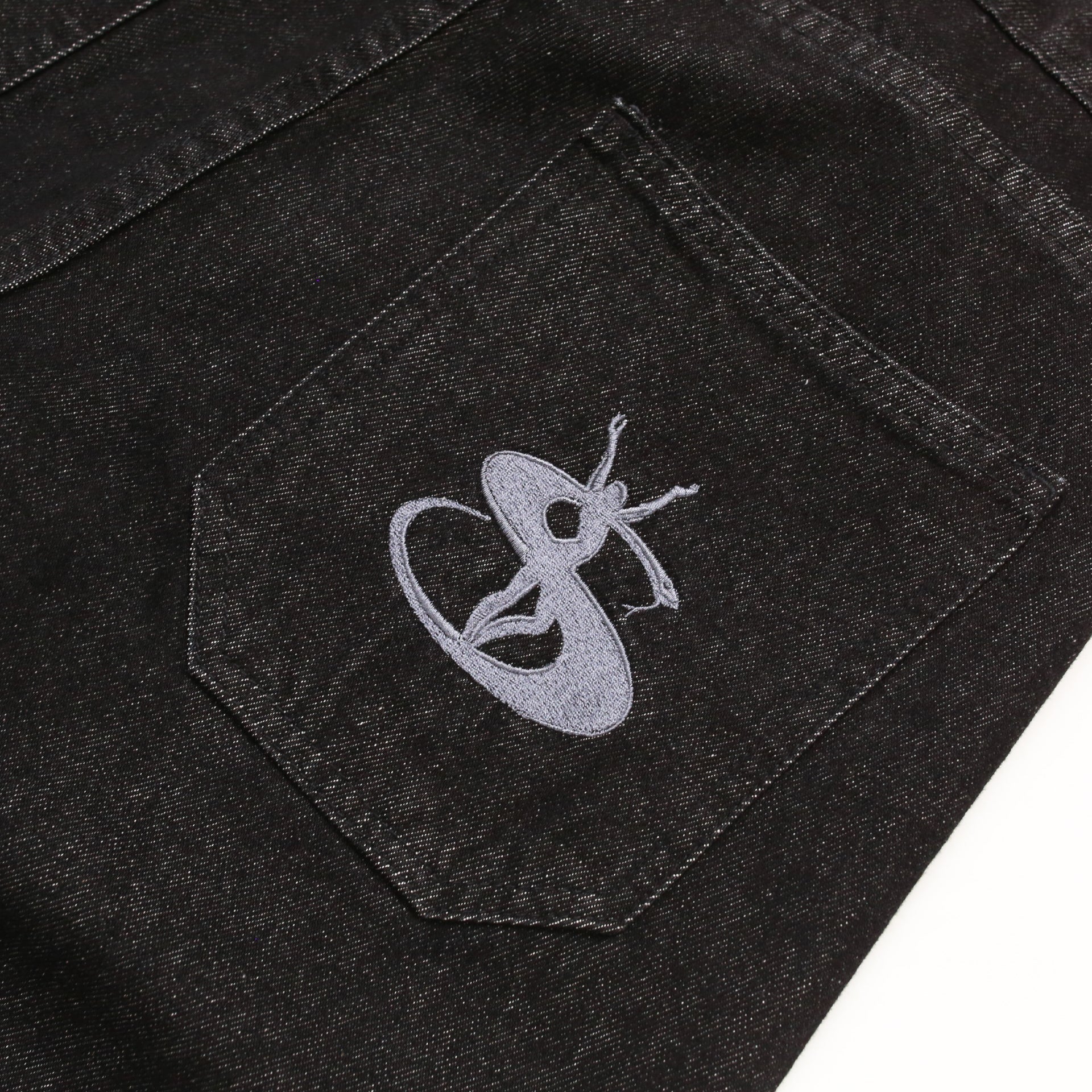 Embroidery at front and back pocket.